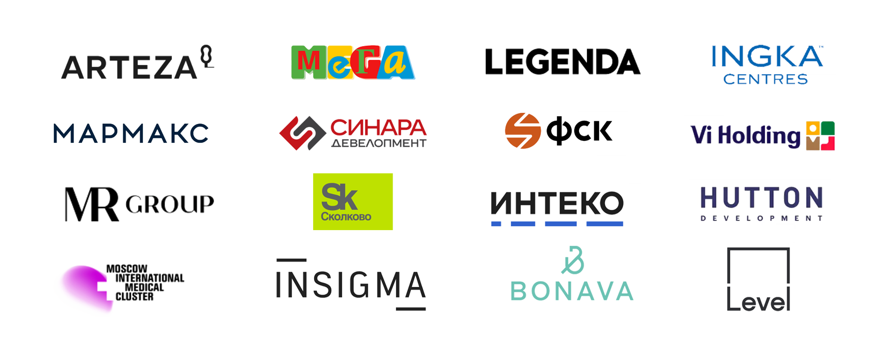 / Notable projects: Central Ring Road (Moscow), artificial structures on highways A-107, M-1, M-5, MEGA, METRO, and AUCHAN shopping centers (transport infrastructure), and various urban redevelopment projects in Moscow.